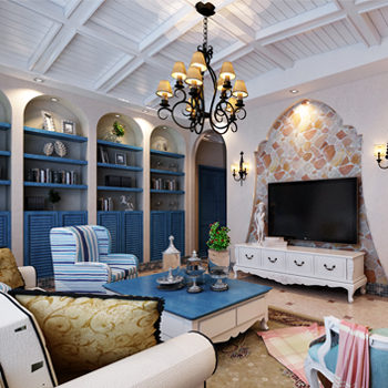 對于地中海來說,白色和藍色是兩個主打,最好還要有造型別致的拱廊和細細小小的石礫。在打造地中海風格的家居時,配色是一個主要的方面,要給人一種陽光而自然的感覺。主要的顏色來源是白色,藍色,黃色,綠色以及土黃色和紅褐色,這些都是來自于大自然最純樸的元素。