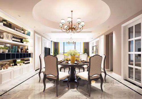 最美的風景不過如此,古典與浪漫的結合,圓形吊頂與圓形餐桌上下呼應,古典韻味的墻布和美式浪漫氣息融為一體,打造嫻靜優(yōu)雅的用餐環(huán)境