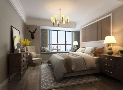 主臥色彩上以平和,古樸色系帶來溫馨關懷的感覺,柔和臺燈營造靜謐的休息氛圍,又讓人感覺溫暖而不孤單,木質的清香深沉,在棉麻床品的柔軟中,營造出一種寧靜致遠的閑適