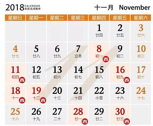 公元2018年11月18日 農(nóng)歷10月(小)11日 星期日 天蝎座 農(nóng)歷戊戌木年 十月小 十一日