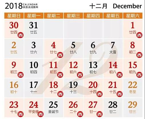 公元2018年12月01日 農(nóng)歷10月(小)24日 星期六 射手座 農(nóng)歷戊戌木年 十月小 廿四日